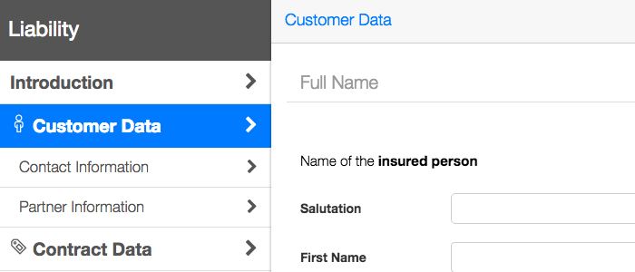 Shows the application "liability quote" as desktop variant which was used throughout the paper as demonstrator